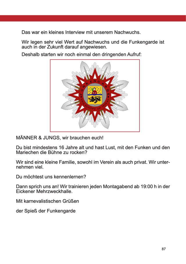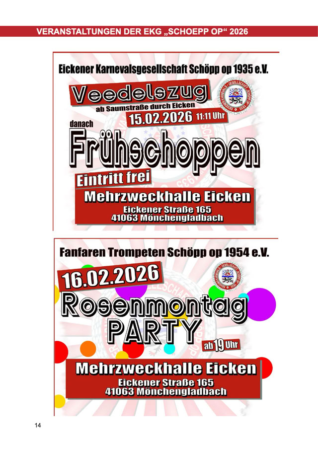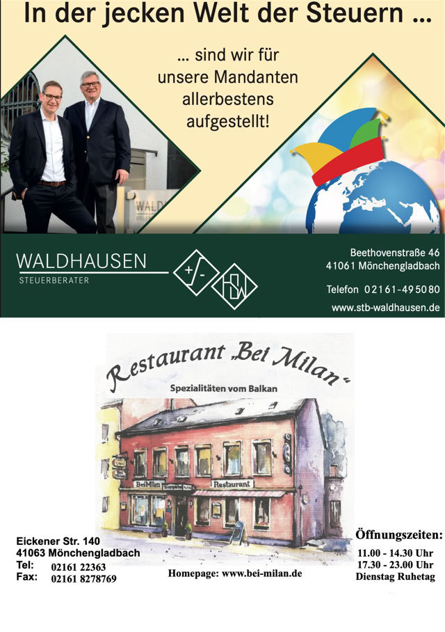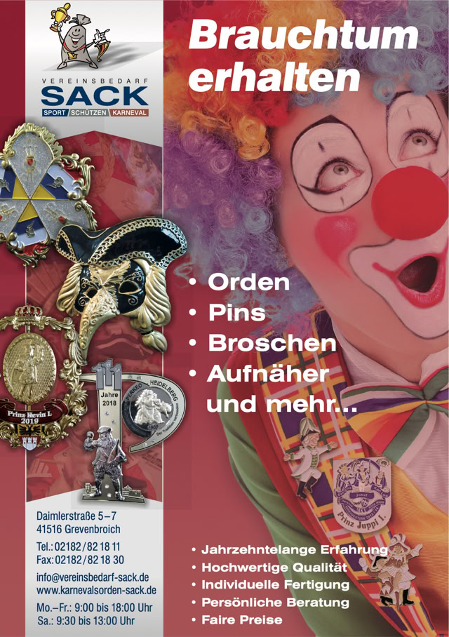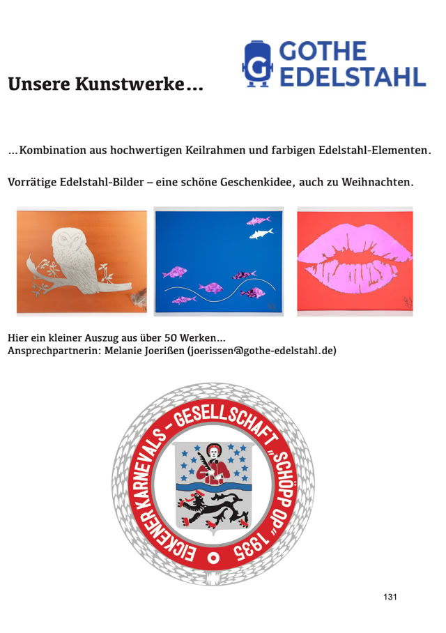 Größe und die Preise zu den Anzeigen im Festbuch zu informieren.