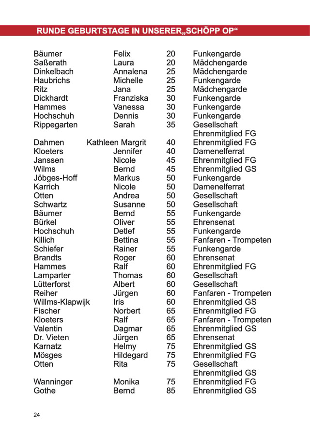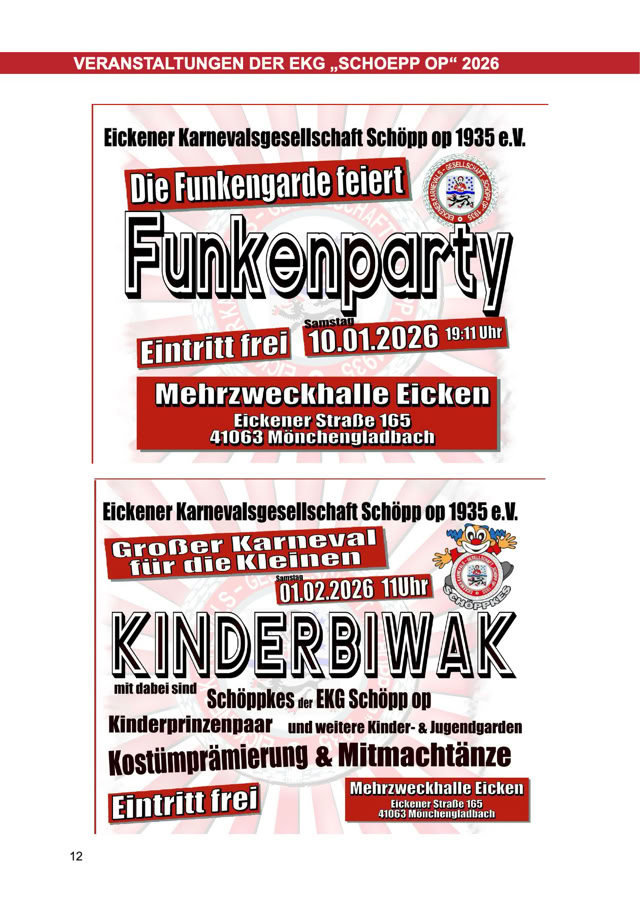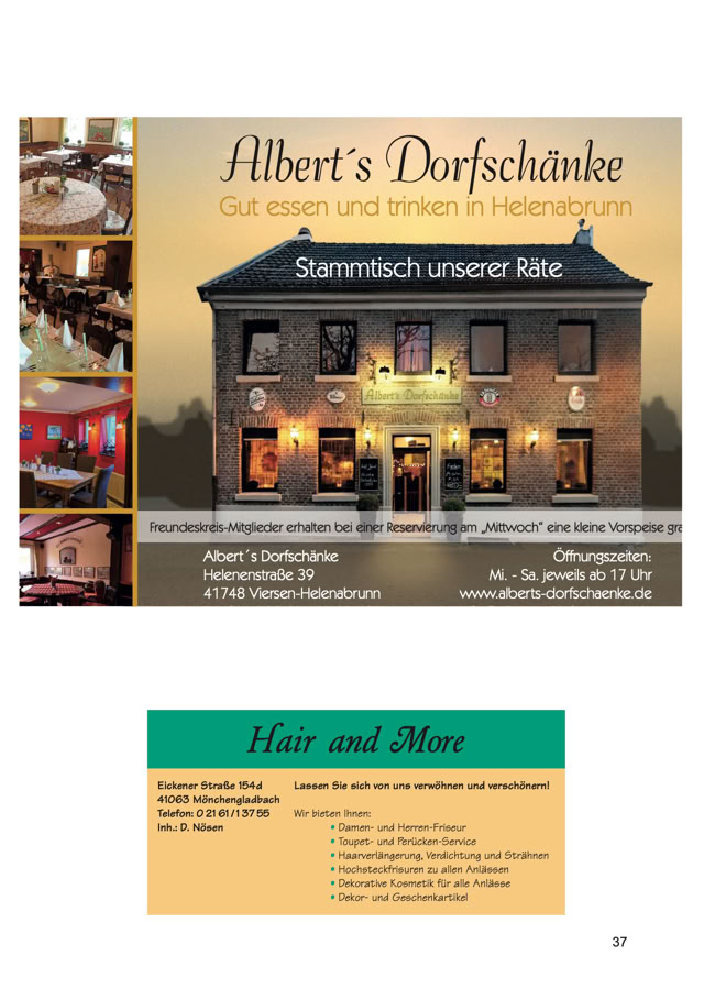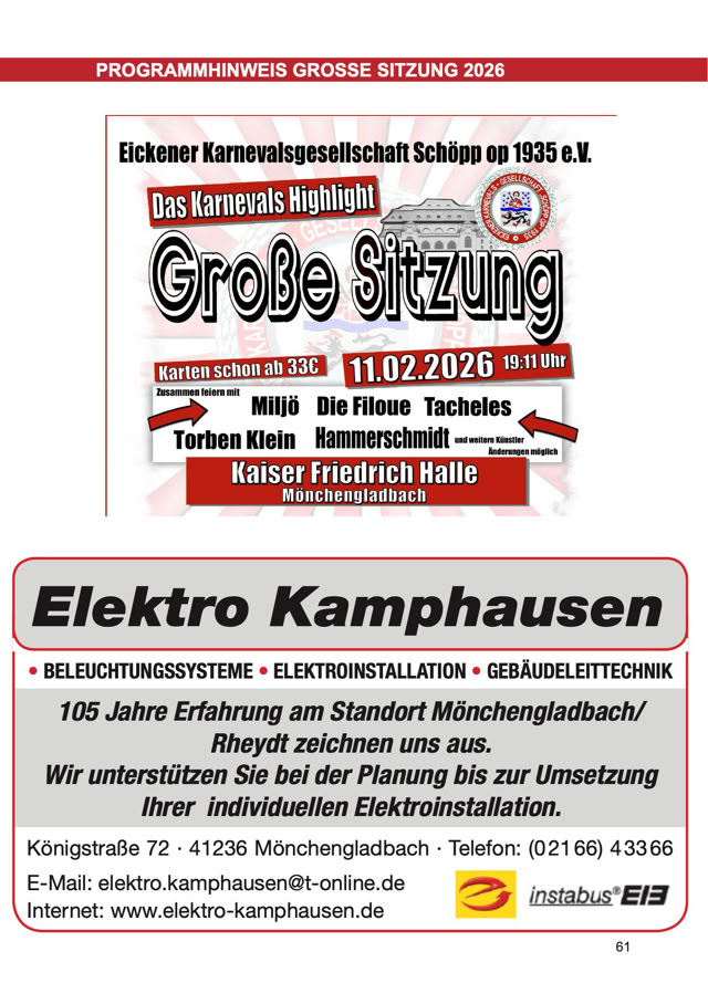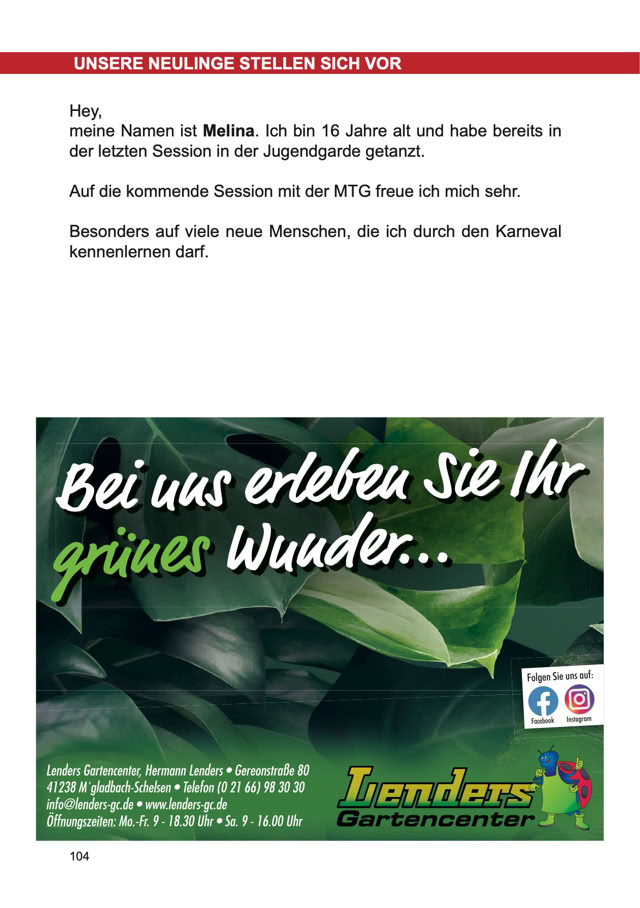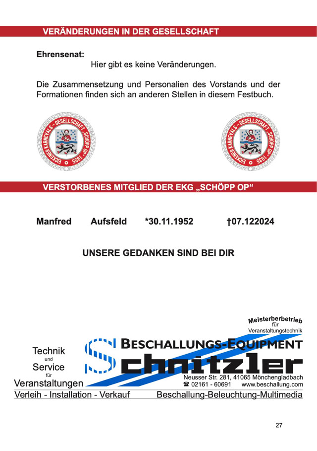 Größe und die Preise zu den Anzeigen im Festbuch zu informieren.